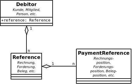 Diese Dreiheit an Objekten geht davon aus, dass es zusätzlich zu Debitoren (bspw. Kunden) und Referenzen (z.B. Rechnungen) ein Businessobjekt für explizite Zahlungsreferenzen gibt (bspw. Rechnungspositionen).